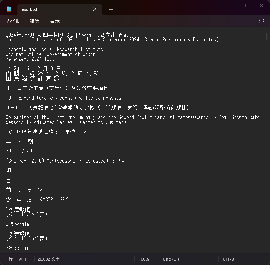 日本語のPDFファイルにもかかわらず非常にきれいに文字起こし(OCR)されました。